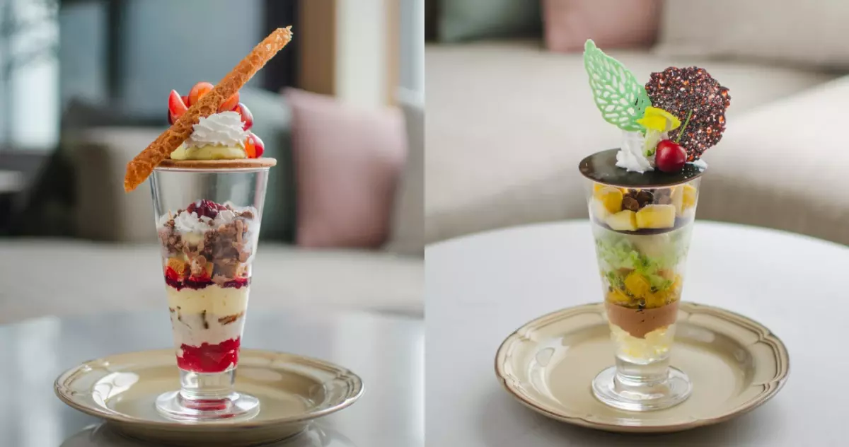 旬のさくらんぼを贅沢に使った王道のフルーツパフェと、チョコレートとバジルの意外な組み合わせが楽しめる爽やかなチョコレートパフェ。温泉地の特別な空間で、この夏だけの贅沢な味わいをご提案します。忙しい日常を少し離れて、頑張る自分へのご褒美に、五感で味わう癒しのひとときをお過ごしください。