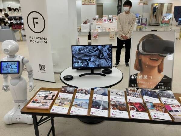フェアに向けて、学生がブランド認定を受けた企業を取材し、プロモーション動画や広告を作成。フェアでは、学生がものづくりの様子を撮影した3D映像をVRで体験できるコーナーを設けたり、プログラミングした人型ロボット「ペッパー」が店頭で接客を行いました。