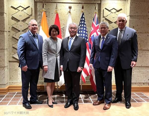 イゲ知事に同行したのは、ドーン・アマノ・イゲ州知事夫人、スコット・サイキ州下院議長、ハワイ州経済開発観光局のマイク・マッカートニー局長、ハワイ・ツーリズム・オーソリティのジョン・デ・フリーズ局長 兼 最高責任者など、総勢 8名が代表団として訪日しました。