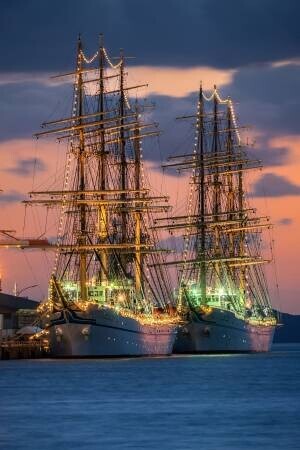 近くで見る日本丸、海王丸の迫力も凄かったですが、周南の工場夜景の中でも存在感のある帆船はさすがだなと思いました。この構図で撮れた事が凄く嬉しかったです。