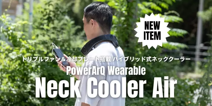アウトドアだけでなく、災害対策グッズとしても人気の「PowerArQ(パワーアーク)」(加島商事株式会社)は、『PowerArQ Wearable Neck Cooler Air(パワーアークウェアラブルネッククーラーエアー)』を、2025年7月18日より各種オンラインストアにて予約を開始いたします。