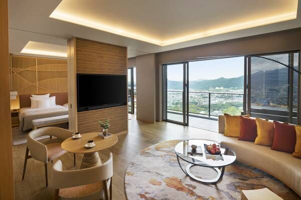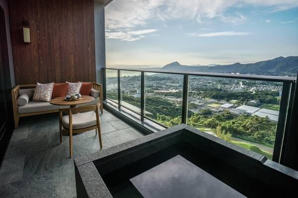 期間限定の特典として、プレミアムスイートへの5ランクアップグレードを確約するプランをご用意。憧れのラグジュア リーホテルでのご滞在をより贅沢に、クラシックツイン シティビューの客室料金はそのままで、お部屋をアップグレードい たします。湯けむりたなびく別府の市街、海、そして雄大な大自然の絶景を存分に満喫いただけます。