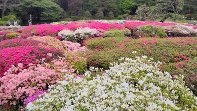 神代植物公園の“つつじ園”は、サッカーコートよりも広い7,800㎡の広大な敷地にクルメツツジ、ヒラドツツジ、サツキツツジなど約270種類、12,000株が植栽されています。例年4月中旬~5月上旬には花盛りを迎え、一面が色とりどりの花で埋め尽くされます。
