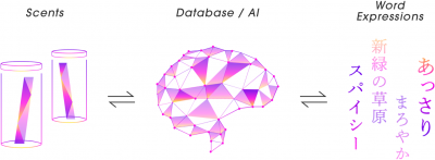 最先端のテクノロジーによって、曖昧で捉えにくい香りの印象を言葉で可視化したり、ある言葉に紐づく香りを導き出すことを可能にします。
