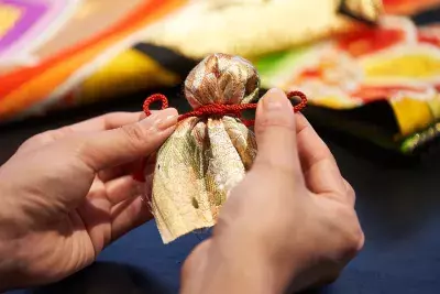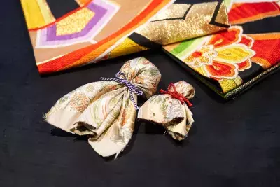 現在では主に帯として用いられていますが、その美しさと技術は世界的にも高く評価されています。この体験では、使われなくなった西陣織の帯を丁寧に解き、その布を用いててるてる坊主を作ります。「伝統と再生」をテーマに、“受け継がれる美”を現代の暮らしの中に取り入れる試みです。