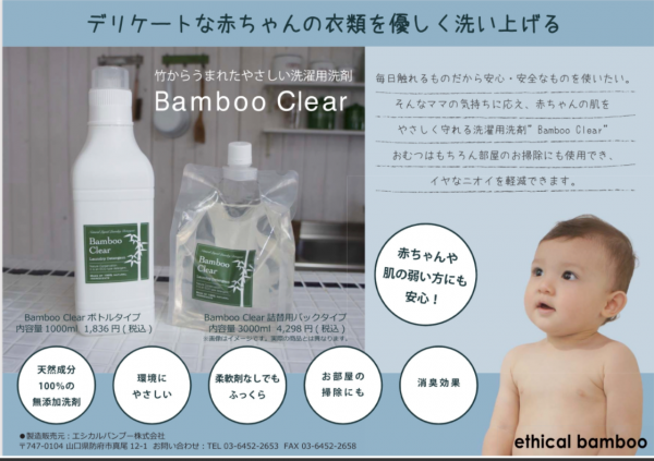 竹の成分が汚れをしっかり落としてふっくら仕上げる今回のリニューアルにあたっては、エシカルバンブー株式会社が手がける洗濯用洗浄液「バンブークリア」を導入しました。