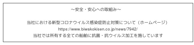 ご予約・お問合せ: 琵琶湖汽船(株) 長浜港 TEL 0749-62-3390(9:00-16:30)