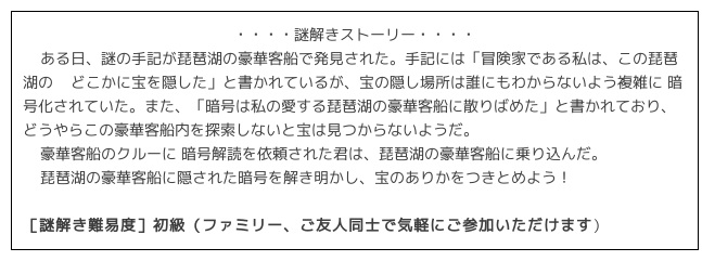 ■「ビアンカ謎解きクルーズ~琵琶湖に眠る秘密の宝~」イベント概要
