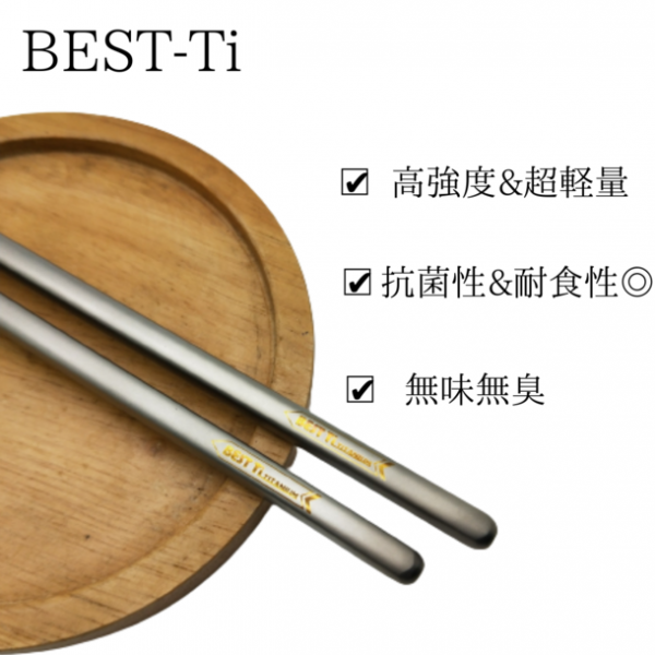 箸は古くなったら捨てる。今までの考えをこの箸が変えてくれます。BEST-Ti純チタン箸は、純チタンで製造されており木製箸や割り箸とは違い一生モノのマイ箸として使用でき、ゴミも減らせるので地球に優しい商品です。