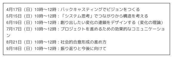 6カ月テーマと月1回のゼミの開催予定日時は以下の通りです。