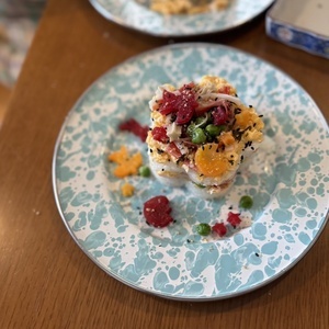 ・冷製料理:スモークサーモン、紅茶鴨スモーク、チーズ盛り合わせ