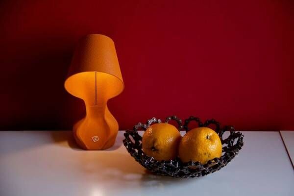 オーミー・ザ・オレンジランプはこのオレンジの皮の素材を元に、3Dプリンターで作られており、廃棄物の再利用と循環経済を目指しつつも、インテリアを楽しむことをコンセプトにしています。