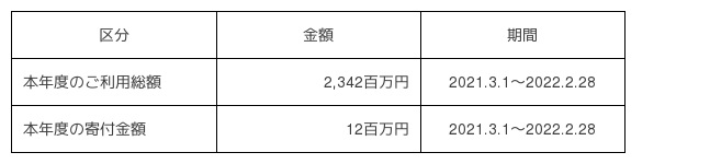 この度、2021年度の寄付額が確定しましたので、お知らせいたします。