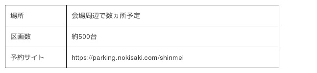 ※2 表内URLのページ公開日は未定です。また、ページ内には周辺の軒先パーキング一般駐車場も表示されます。ご予約の際にはご利用駐車場をよくご確認の上、ご予約いただきますようお願い申し上げます。