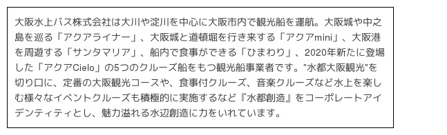 お問合せ:大阪水上バス予約センター 06ー6942ー5511(10:00~16:00)