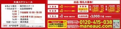 2023年9月5日(火)まで出品登録を受け付けておりますので、「マネオク」事務局や公式ホームページから新規入会をお申込みください。