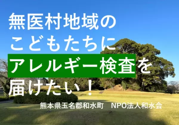 NPO法人 和水会(所在地:熊本県玉名郡和水町、代表:神崎 昌二)は、和水町の就学前児童(来年度から入学するこども達)全員が無料でアレルギー検査を受けられるよう、クラウドファンディングサイト「CAMPFIRE for Social Good」にて2023年11月15日(水)よりクラウドファンディングを実施しております。