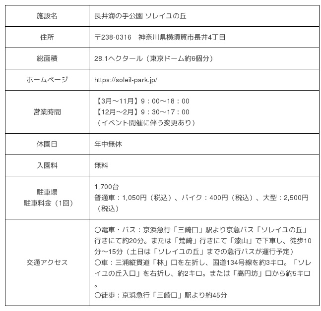 ■「長井海の手公園 ソレイユの丘」について(所在地:神奈川県横須賀市長井4丁目):https://soleil-park.jp/