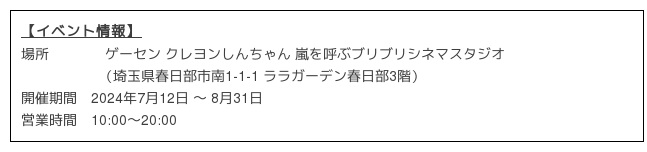 テクミラホールディングスの子会社であるネオス株式会社(本社:東京都千代田区、代表取締役 社長執行役員:池田 昌史)は、日本およびアジア地域で販売中のNintendo Switch向けソフト【クレヨンしんちゃん 『炭の町のシロ』】(以下、本作)におけるプロモーションの一環として、韓国で好評を得たPopUp展開を、春日部のクレヨンしんちゃんオフィシャルアミューズメント&ショップである「ゲーセン クレヨンしんちゃん 嵐を呼ぶブリブリシネマスタジオ」(運営:株式会社プレジャーキャスト)にて7月12日~8月31日の期間限定で実施いたします。