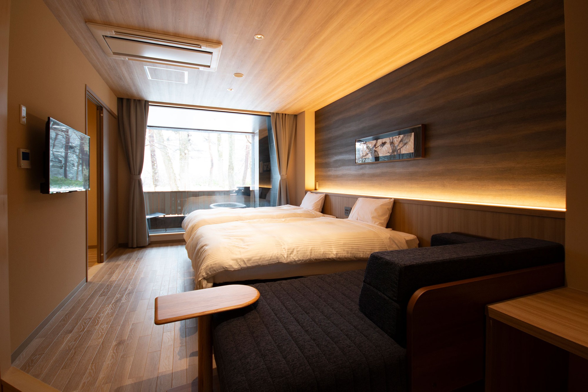 また、一部の客室を和の安らぎとベッドの快適性を兼ね備えた「和ベッドルーム」にリノベーションいたしました。和の情緒を残しつつ、ベッドで快適に過ごせる和ベッドルームは、シニアのお客様や小さなお子様連れのお客様も快適にお過ごしいただけます。そのほか、和室・洋室・和洋室など、多種多様な部屋タイプを揃えているので、宿泊される人数や旅の目的に合わせてお好きなタイプをお選びいただけます。