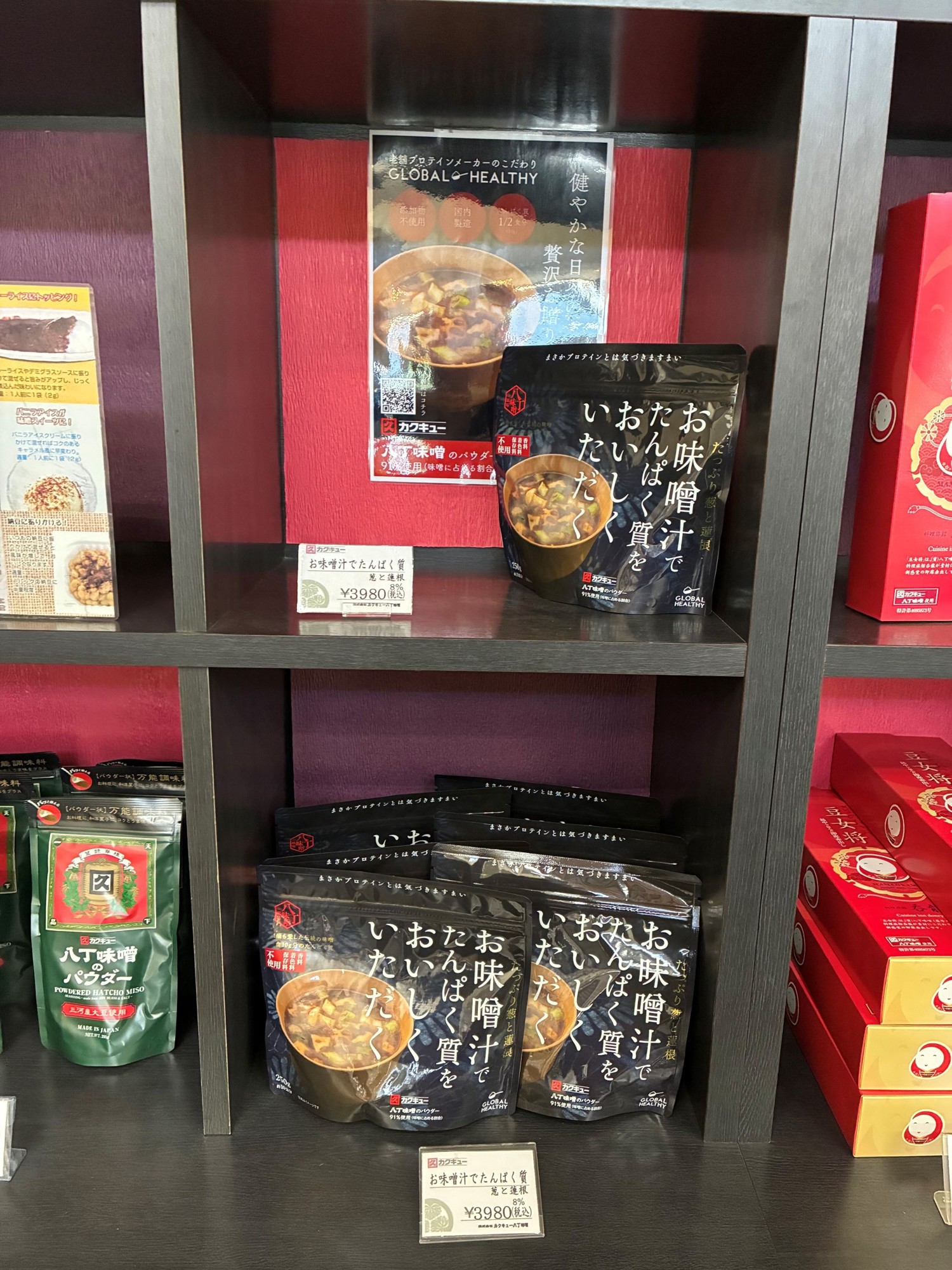 カクキューの売店で販売開始!八丁味噌のパウダーを使用した味噌汁プロテイン