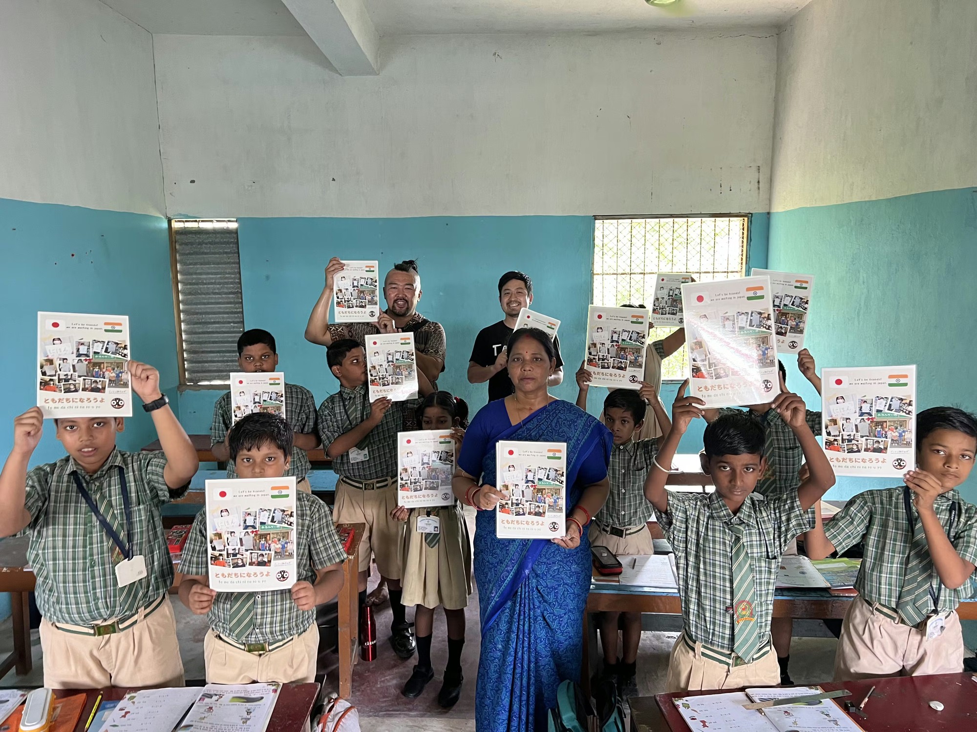 初めてインドの学校の子どもたちにステージを見てもらった時、胸からこみ上げてくる興奮と震え立つ勇気と感動を子どもたちからもらいました。そのことに対して私たちができるささやかなお返しとして、楽器や手作りの下敷きなどをお渡ししています。