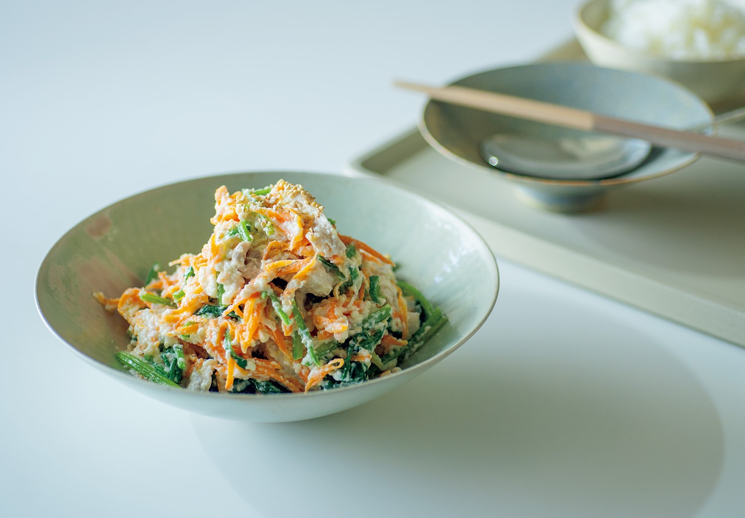 つぶした豆腐の水分を粉チーズに吸わせて、水きり不要の「白あえ」