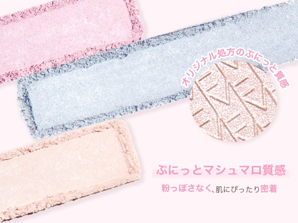 パウダーなのに、粉っぽくない。指に取った瞬間にぷにっとしたマシュマロのような不思議な感触が特徴です。肌に乗せると、まるで肌と一体化するように密着し、一日中美しいツヤが続きます。
