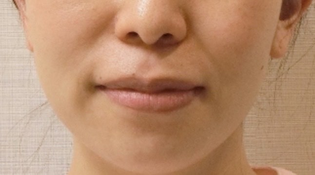 「写真を見ると、口元や顎のラインが少し傾いているように感じる」
