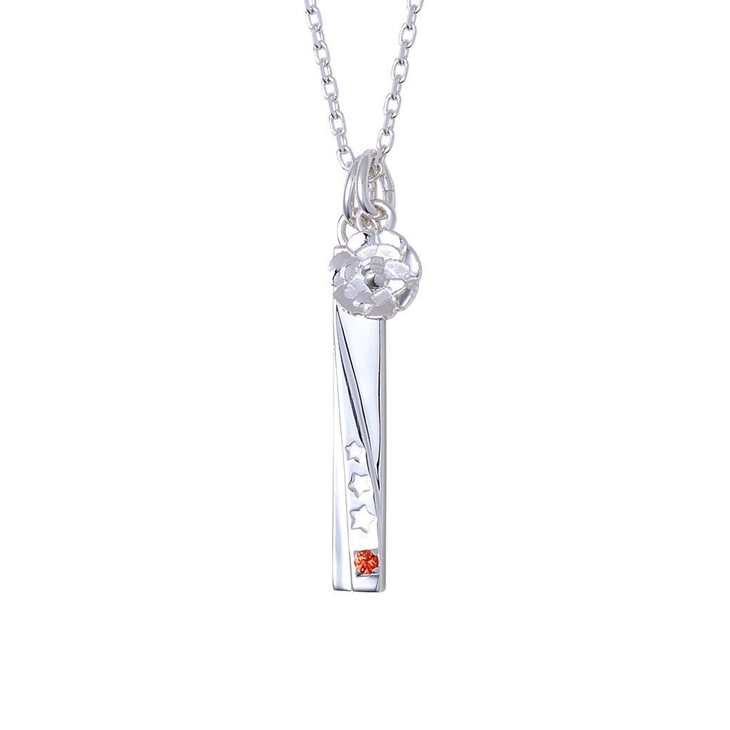 バータイプの上品なフォルムにイメージカラーの天然石をセット。カーネーションの花のモチーフチャームがポイントです。