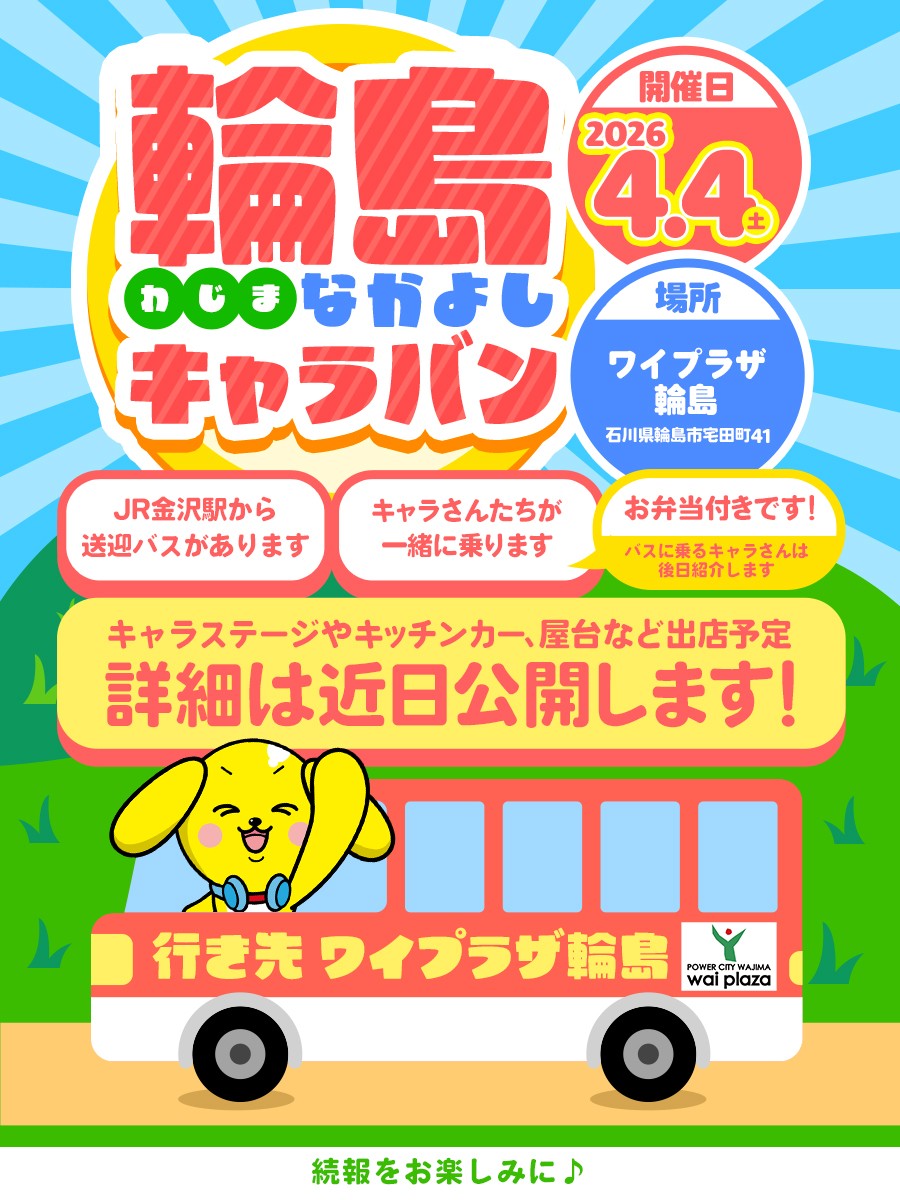 輪島支援の新しいカタチ~日本各地のご当地キャラさんと高校生が行く「輪島なかよしキャラバン」が4月4日に走ります