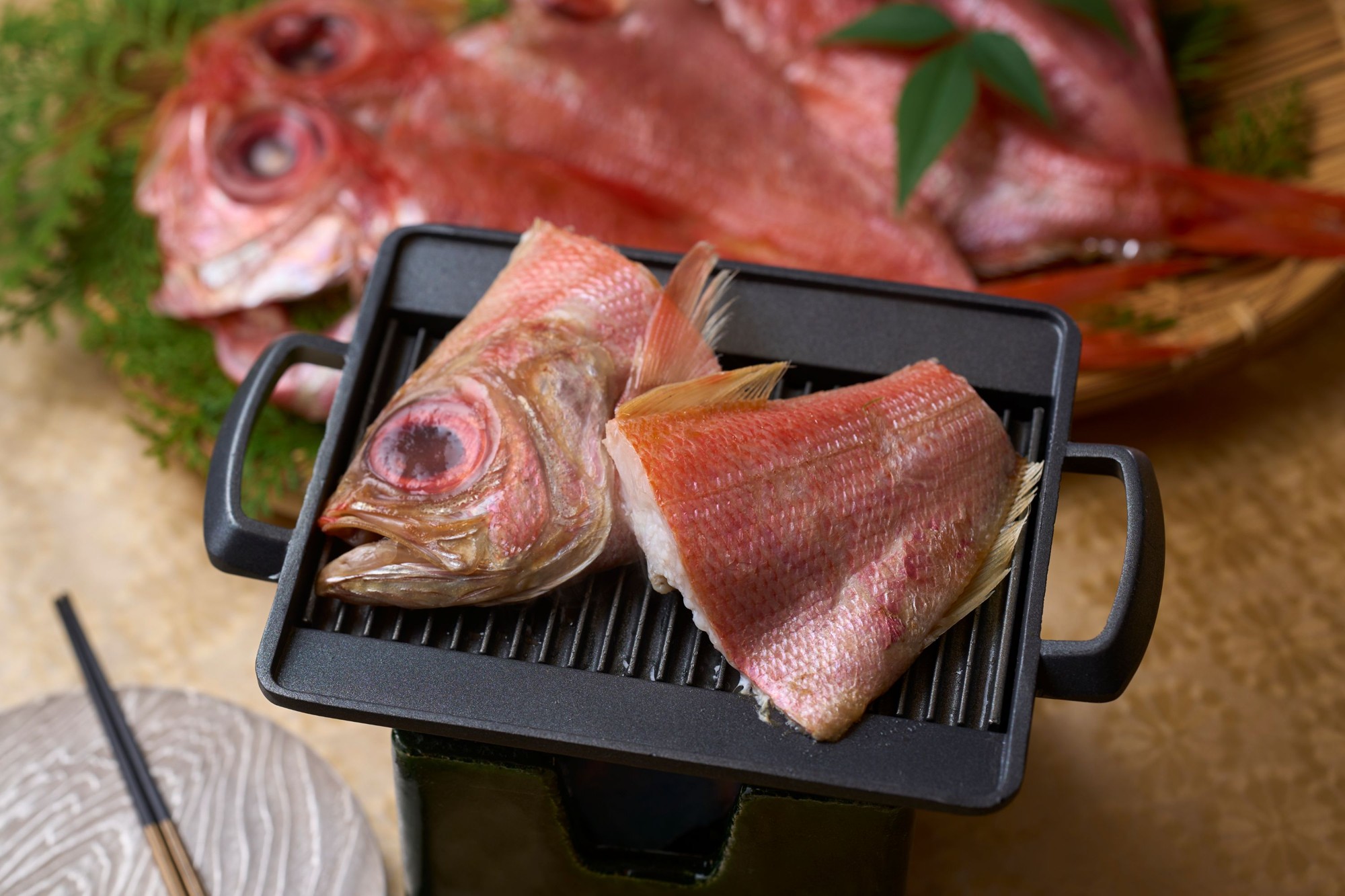 「金目鯛づくしとあわびの海鮮バイキング」は、大江戸温泉物語をご利用いただくお客様に、厳選した金目鯛をふんだんに使用し、さまざまな調理法で仕上げた金目鯛料理を心ゆくまでお楽しみいただける自慢のバイキングです。