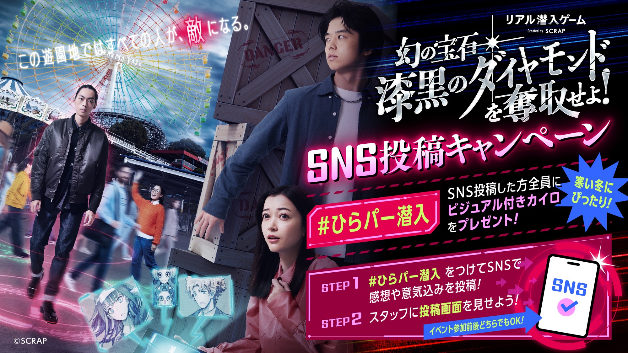 全世界で累計1,500万人以上を動員しているリアル脱出ゲームを企画制作する株式会社SCRAP(本社:東京都渋谷区、代表:加藤隆生)は、ひらかたパークで好評開催中の「リアル潜入ゲーム」最新作、『リアル潜入ゲーム 幻の宝石「漆黒のダイヤモンド」を奪取せよ!』を2026年3月31日(火)をもって、イベントを終了することを発表いたします。