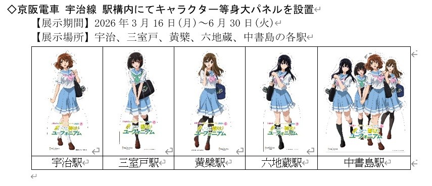 ~宇治が舞台のアニメ「響け!ユーフォニアム」とのコラボレーション企画~「京阪電車×響け!ユーフォニアム2026 春」の開催決定!
