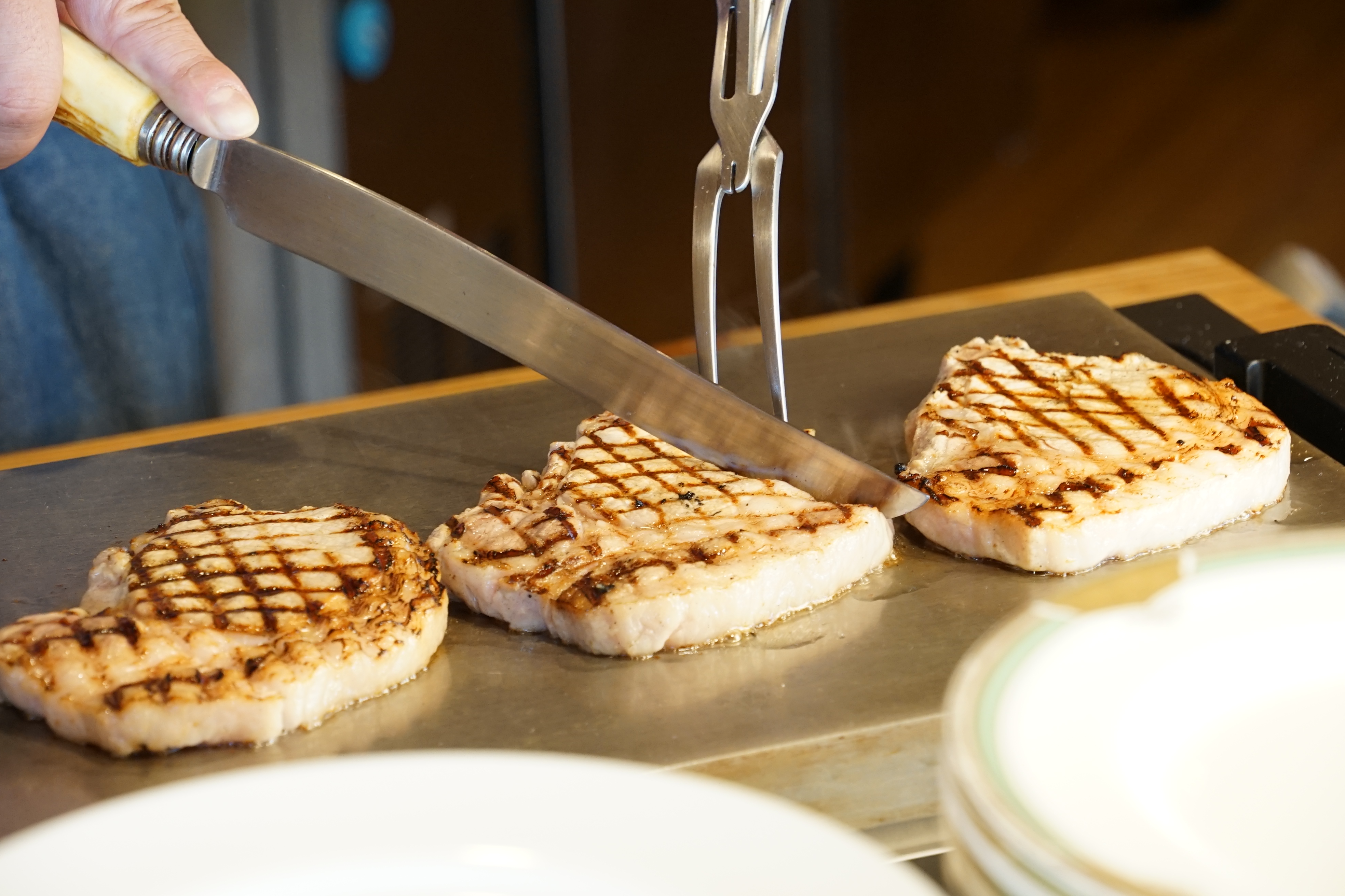 目の前で仕上げる神戸ポークのグリルステーキをはじめ、ロールキャベツなどの温製料理を用意。春の食材を取り入れた前菜や和食メニュー、イチゴスイーツなどもそろえます。