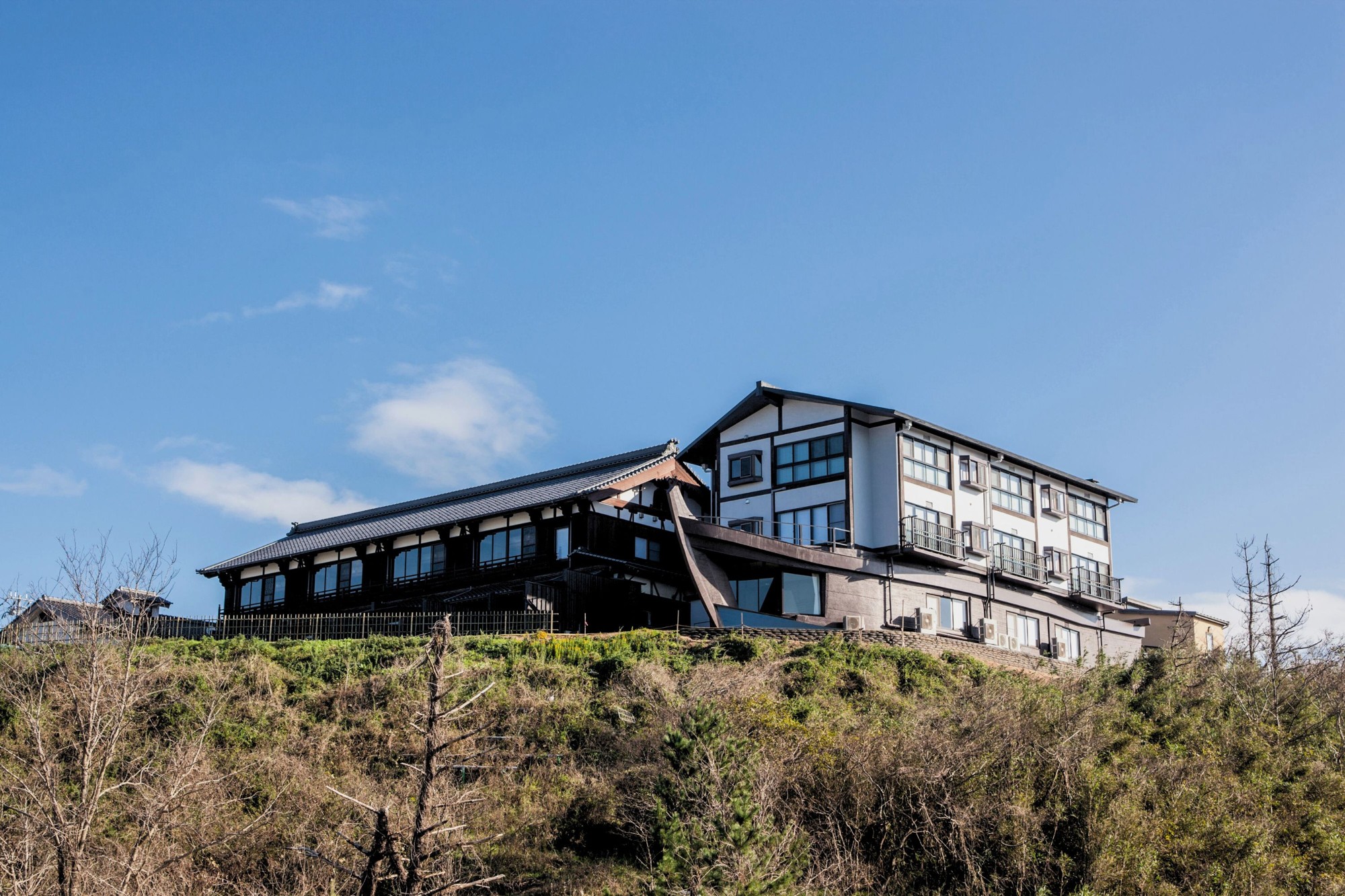 『 旅亭 櫂』は、京丹後の海を望む木造三階建ての純和風建築。料理を主軸に据え、落ち着いた空間の中で食事を楽しむことを大切にした料理旅館です。