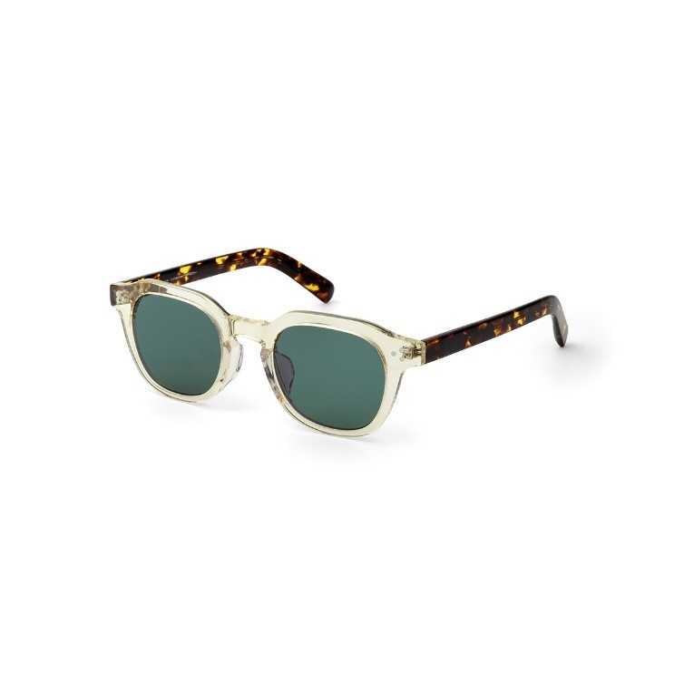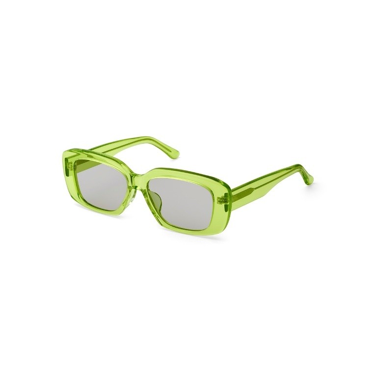 今シーズンのトレンドを象徴する、天地の浅いワイドなスクエア型。目を引くクリアグリーンのフレームは、掛けるだけで顔周りをパッと明るく、フレッシュな印象に変えてくれます。フェスや夏のイベントなど、ファッションを思い切り楽しみたい日のアクセントにオススメの1本。