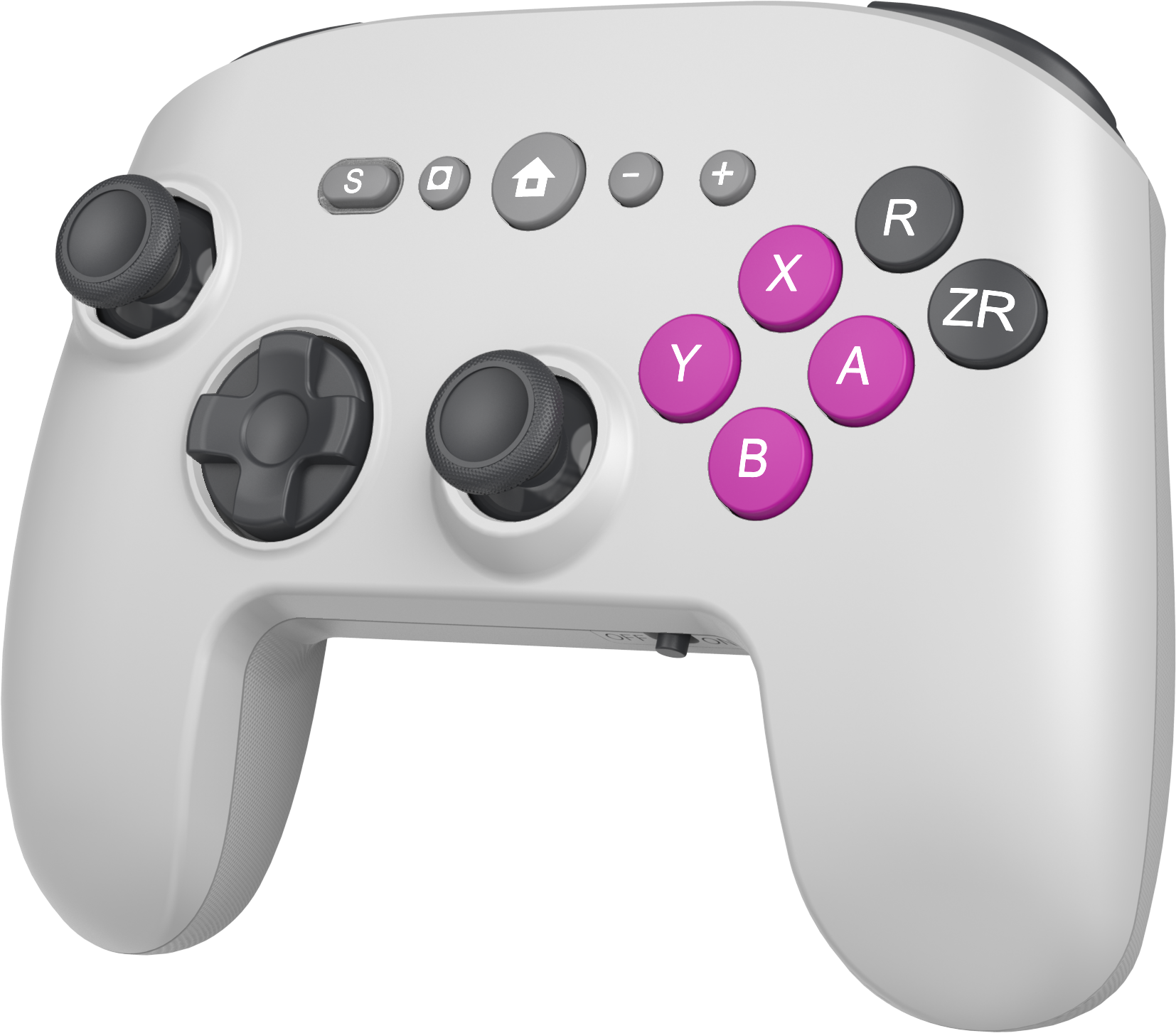 【特徴1】レトロゲーム機風カラーを採用した、天面6ボタンのSwitch2用無線コントローラー