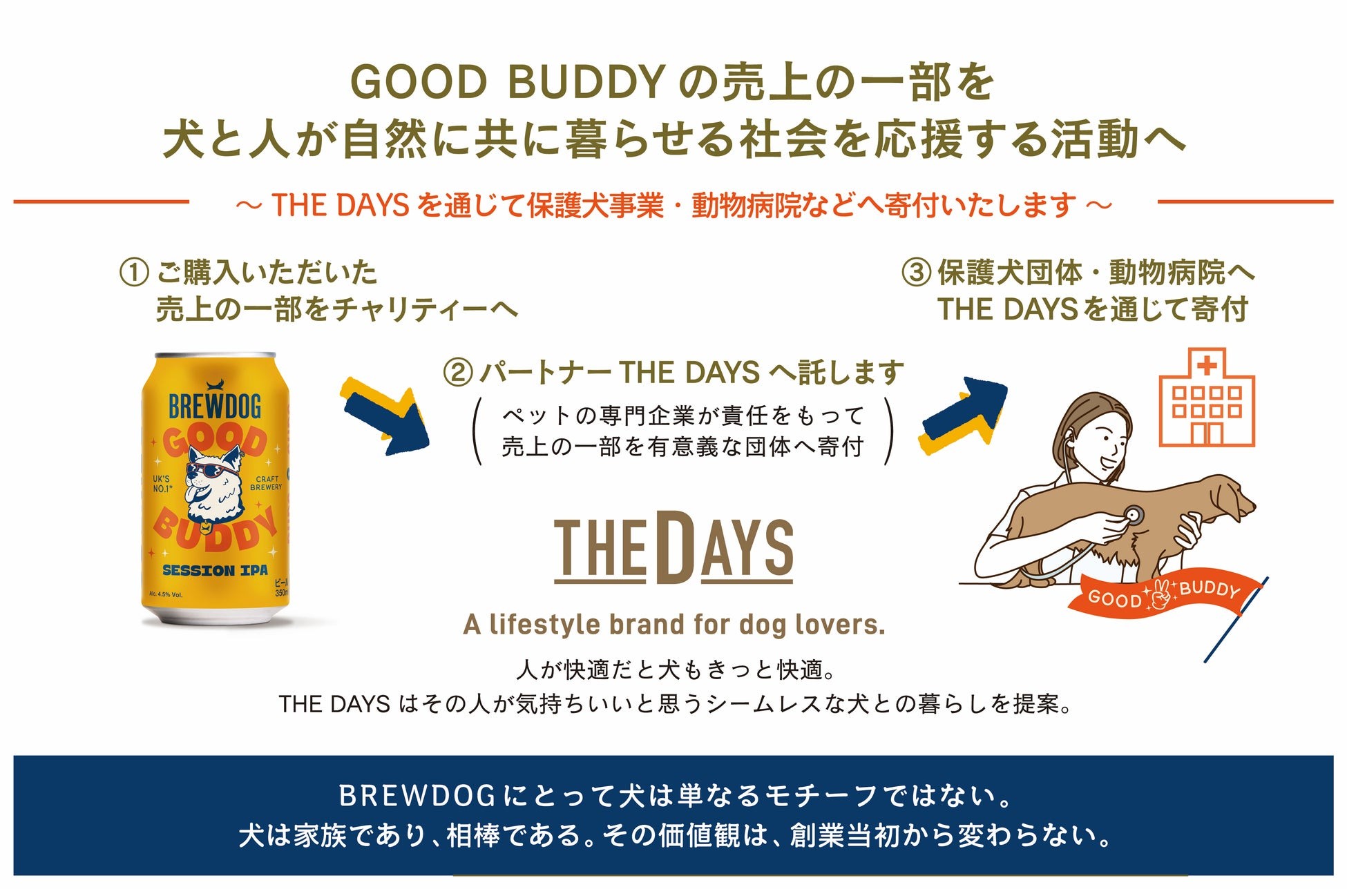 GOOD BUDDYは、その売上の一部を犬と人が自然に共に暮らせる社会を応援する活動へ活用予定である。