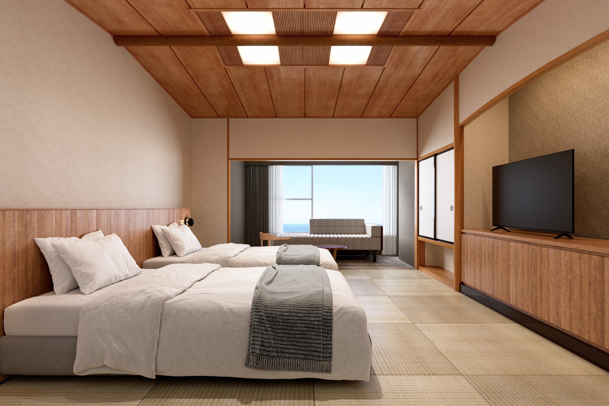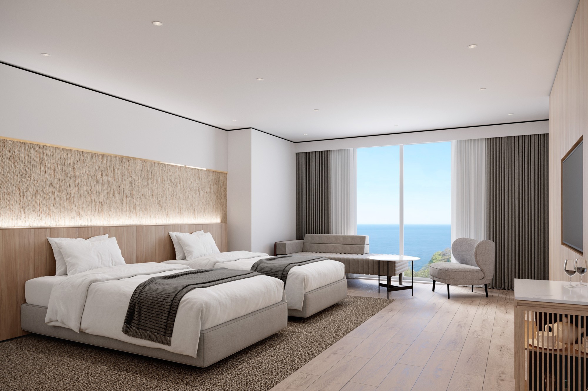 今回のリブランドに合わせ、新たに約30室の客室を増設いたします。多くのお部屋には開放感あふれる大きな窓を配し、眼前に広がる相模灘の絶景をお楽しみいただけます。
