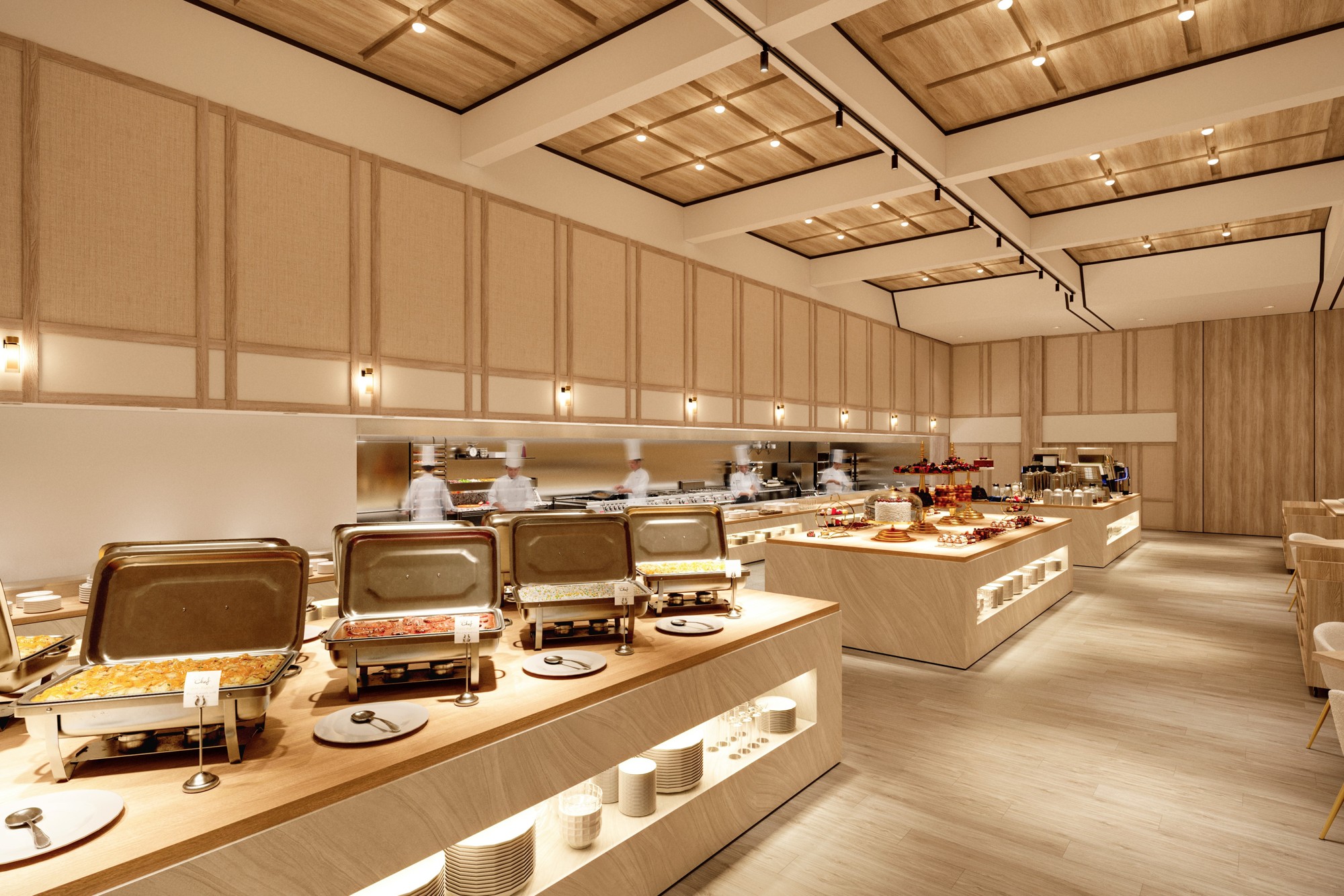 明るくモダンな雰囲気のレストランでは、バラエティ豊かなメニューをバイキング形式でお楽しみいただけます。