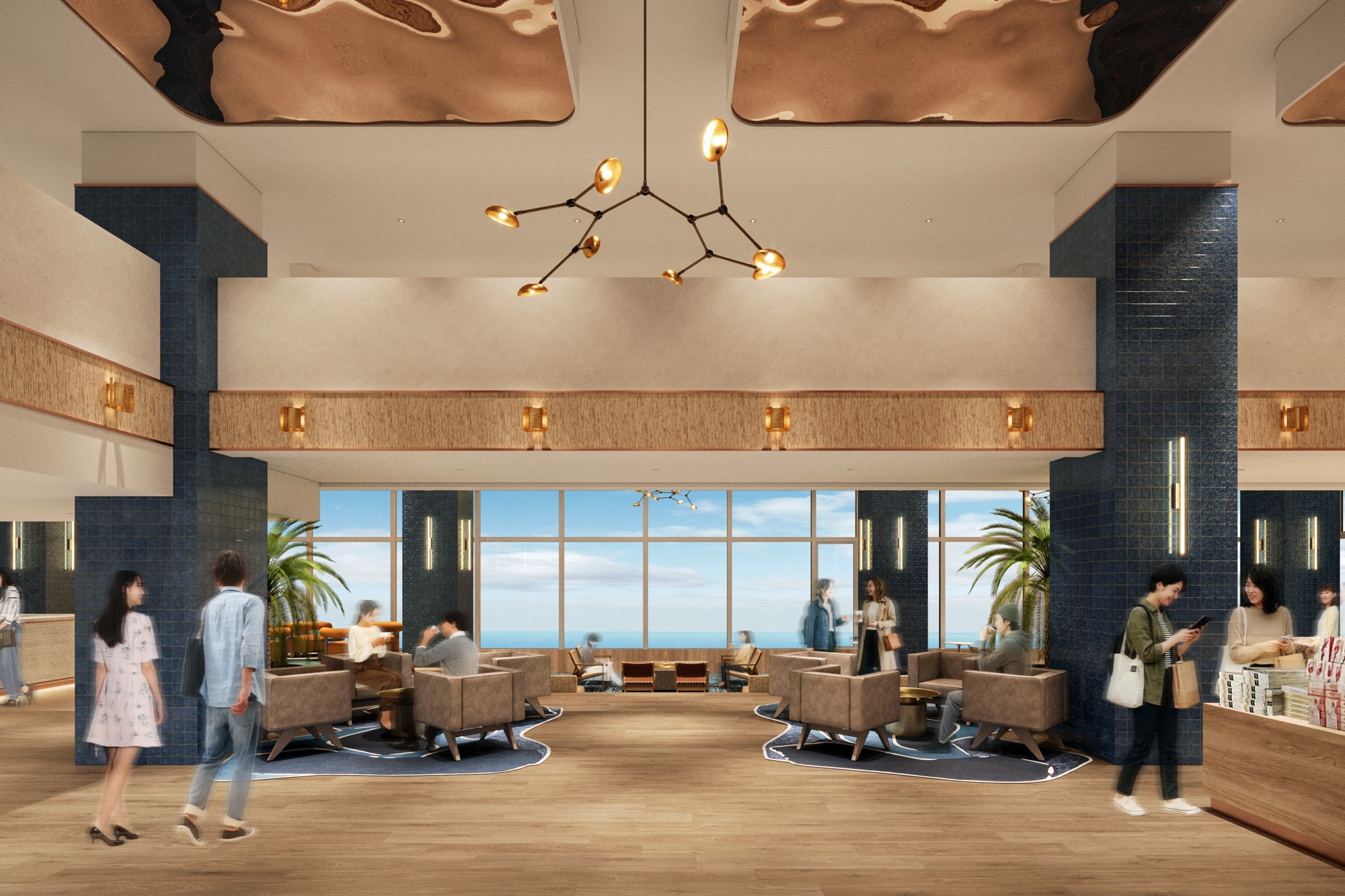 ロビーを抜けた瞬間、目の前に広がるのは大きな窓に映し出される相模灘のオーシャンビュー。