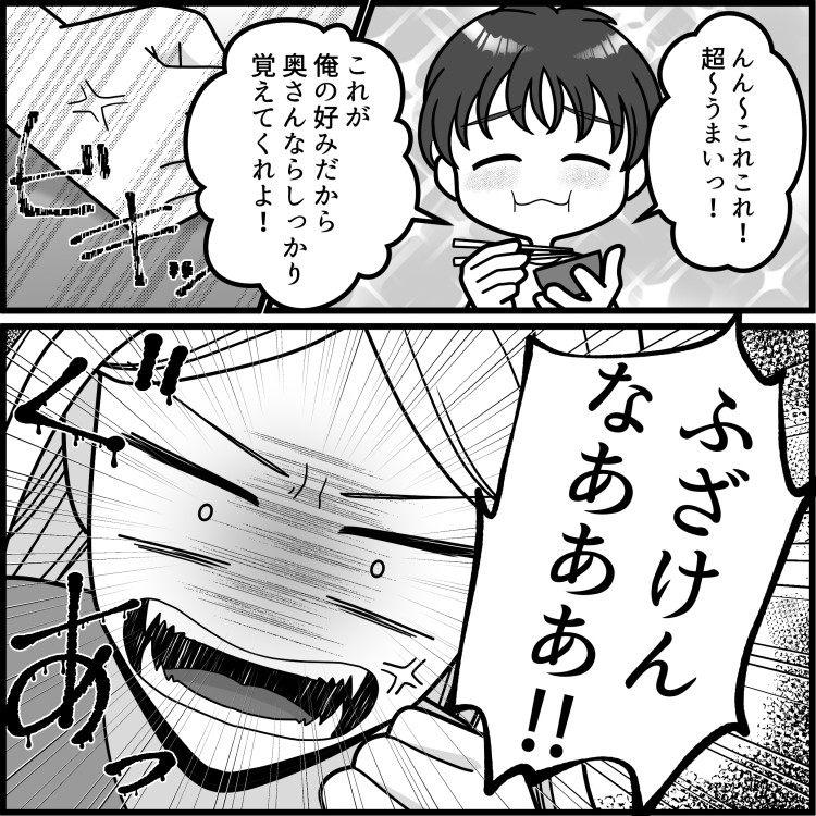 美咲は同期の賢人と、1年の交際を経て結婚した。そして今日、念願の新居へ引っ越しだ。実家暮らし同士だったため、これから毎日一緒にいられる幸せを噛み締める美咲。すると、賢人から「ずっと美咲の手料理を食べるのを楽しみにしていた」と言われる。賢人の期待に応えようと、美咲は張り切って料理をすることに。しかし、美咲の手料理を口にした瞬間、賢人からとんでもない言葉が飛び出す!?
