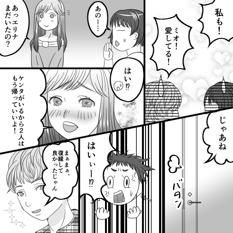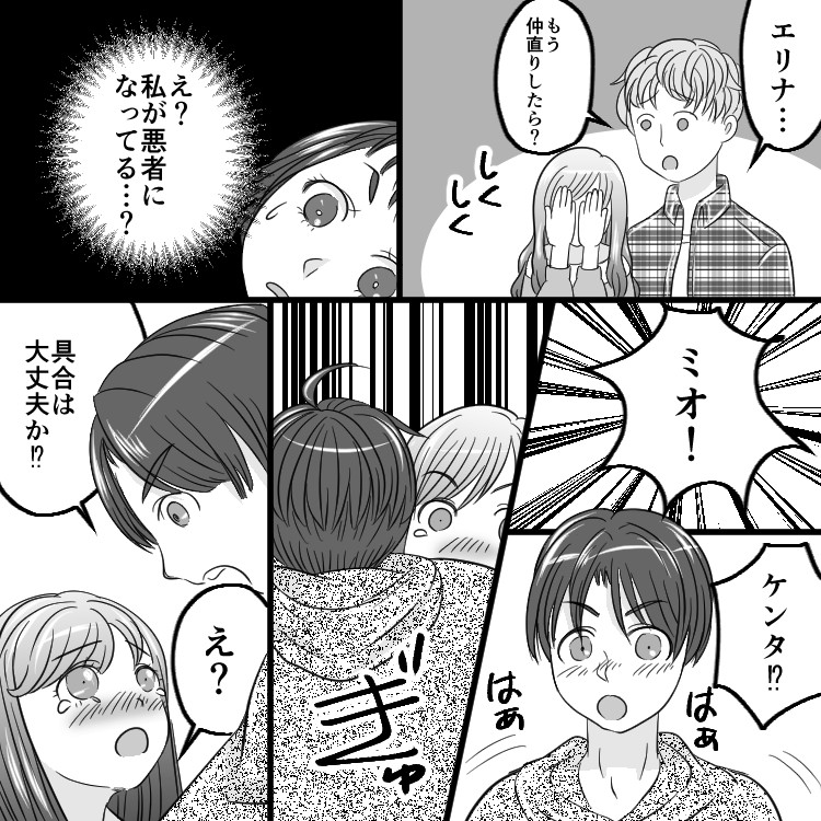 ミオに一歩的に嫉妬されて、大迷惑を被ったエリナ。今後はミオたちが別れないことを切実に願いましょう!