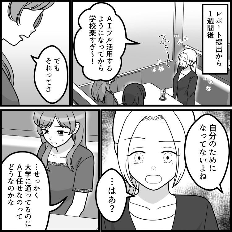 「アンタって真面目ちゃんだよねw」「私みたいにAI使って要領よく生きないと~」大学のルール違反女子に“努力”をバカにされた!?