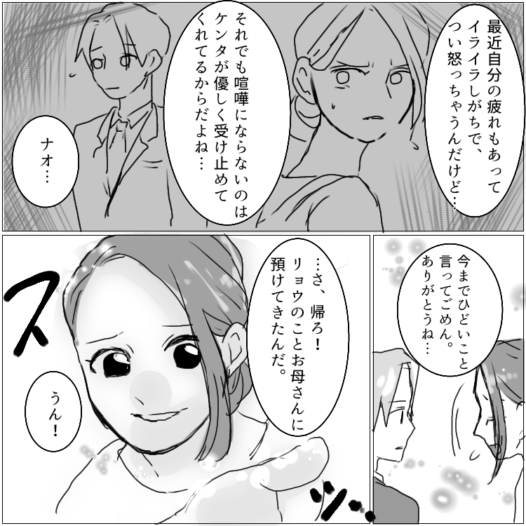 原田さんに言い寄られて一瞬調子に乗ってしまったものの、なんだかんだ妻を愛しているケンタ。これからはよそ見せず、家族3人で幸せに過ごしてくださいね!