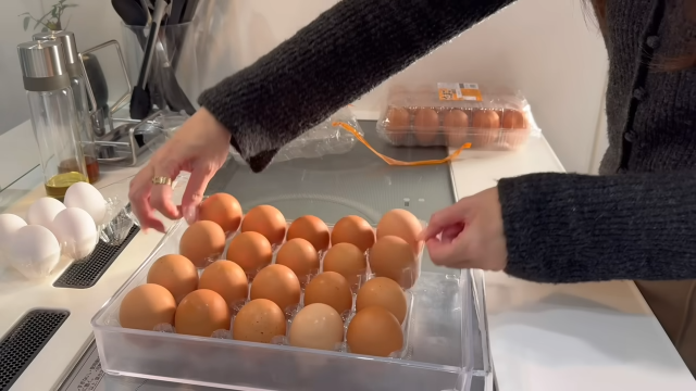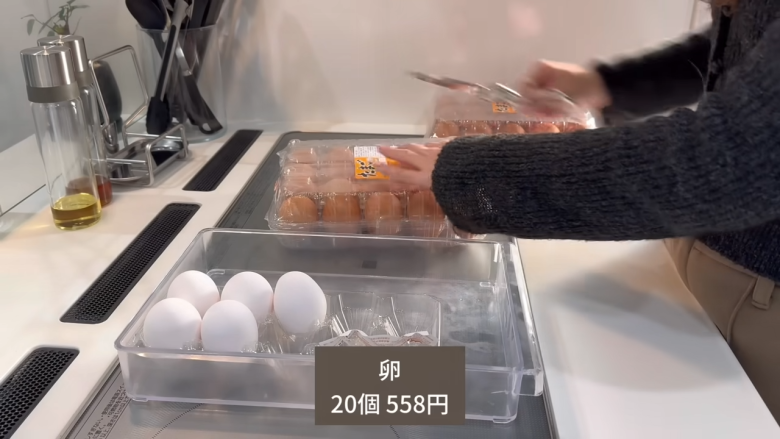 出典:aya vlog卵がぴったり入る専用のケースに移し替えて、冷蔵庫へ保管するのが、ayaさん流のスッキリ見せる収納術です。