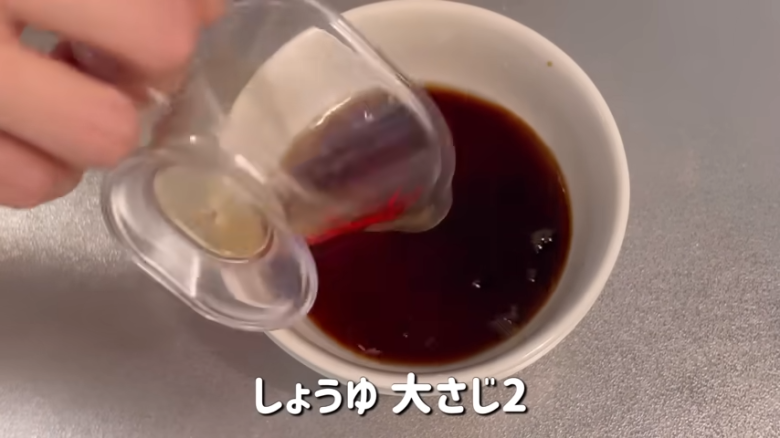 砂糖、みりん、酒、しょうゆを各大さじ2ずつ入れて混ぜます。