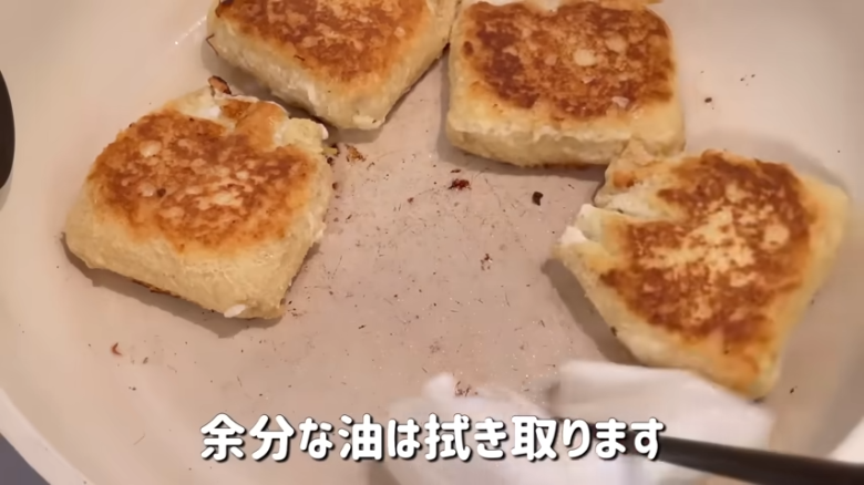 出典:夫手取り17万円の節約ごはん油揚げの上にキッチンペーパーを置き、手でグッとおさえましょう。