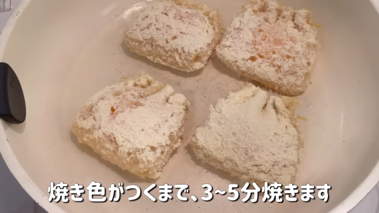 ⑤フライパンに油を入れて、④を焼き色がつくまで焼く